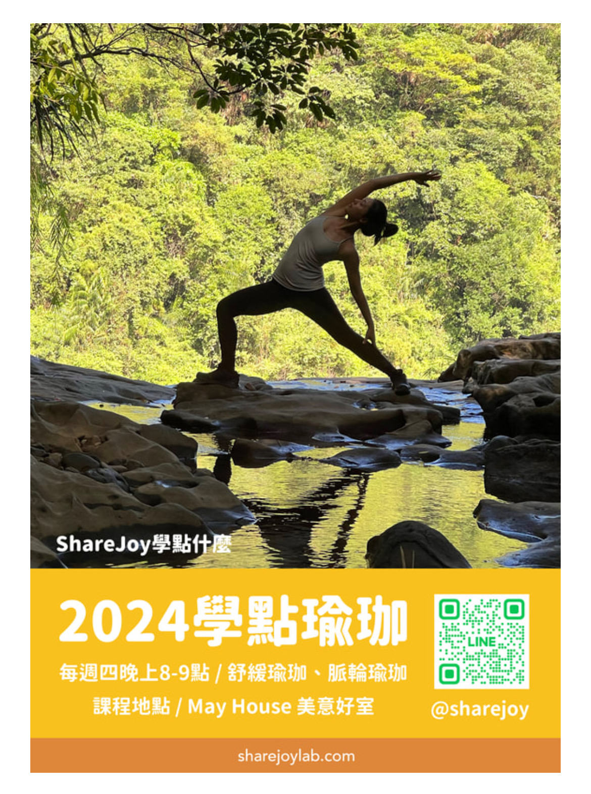 以舒緩瑜珈、與妮古瑪瑜珈為主軸,引領學員在不同體位法中,提升對自己身體的覺知與觀察,並深入身體七大脈輪的開啟。